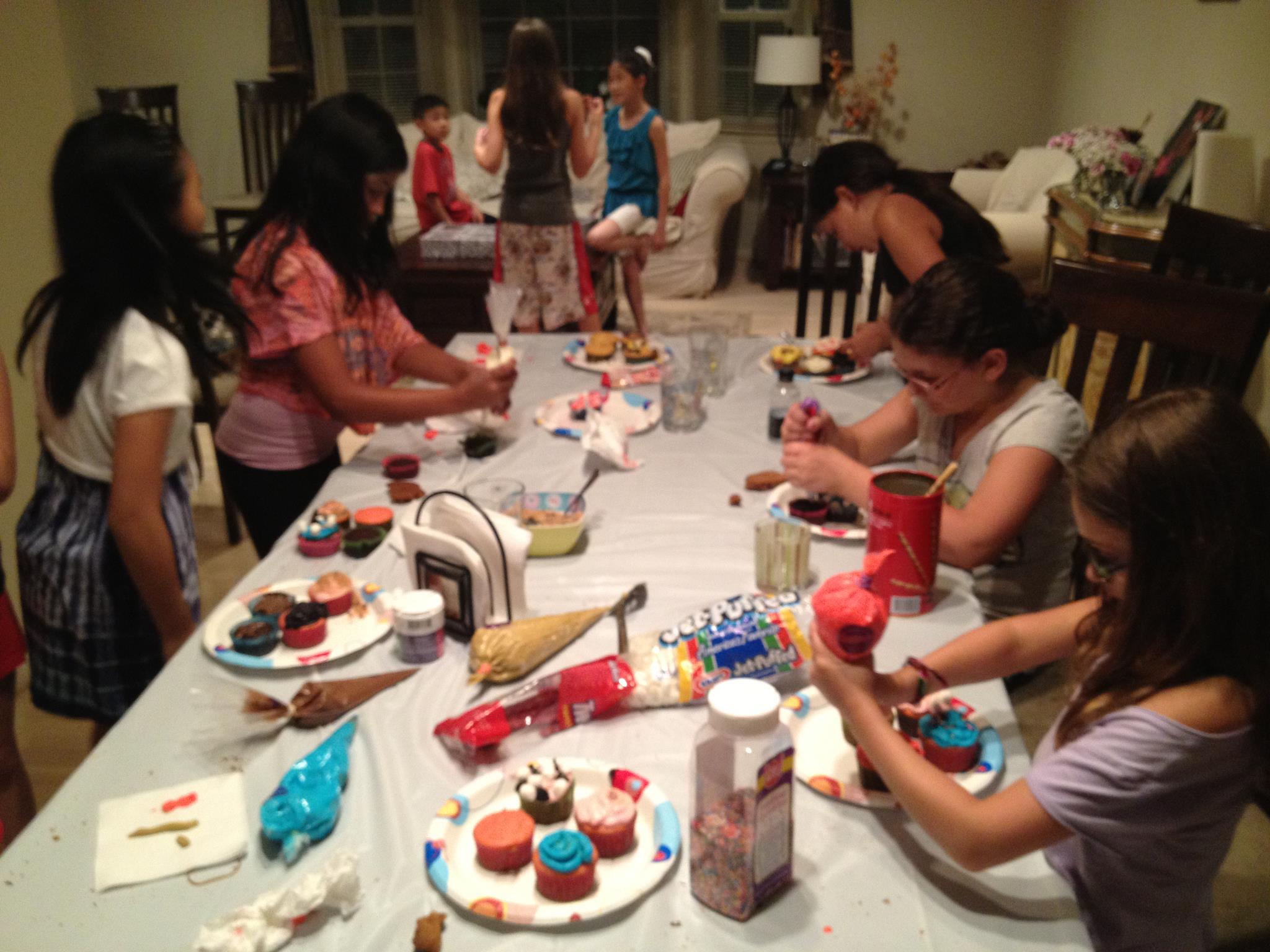 (3) 2015 10th birthday party, decorating cupcakes